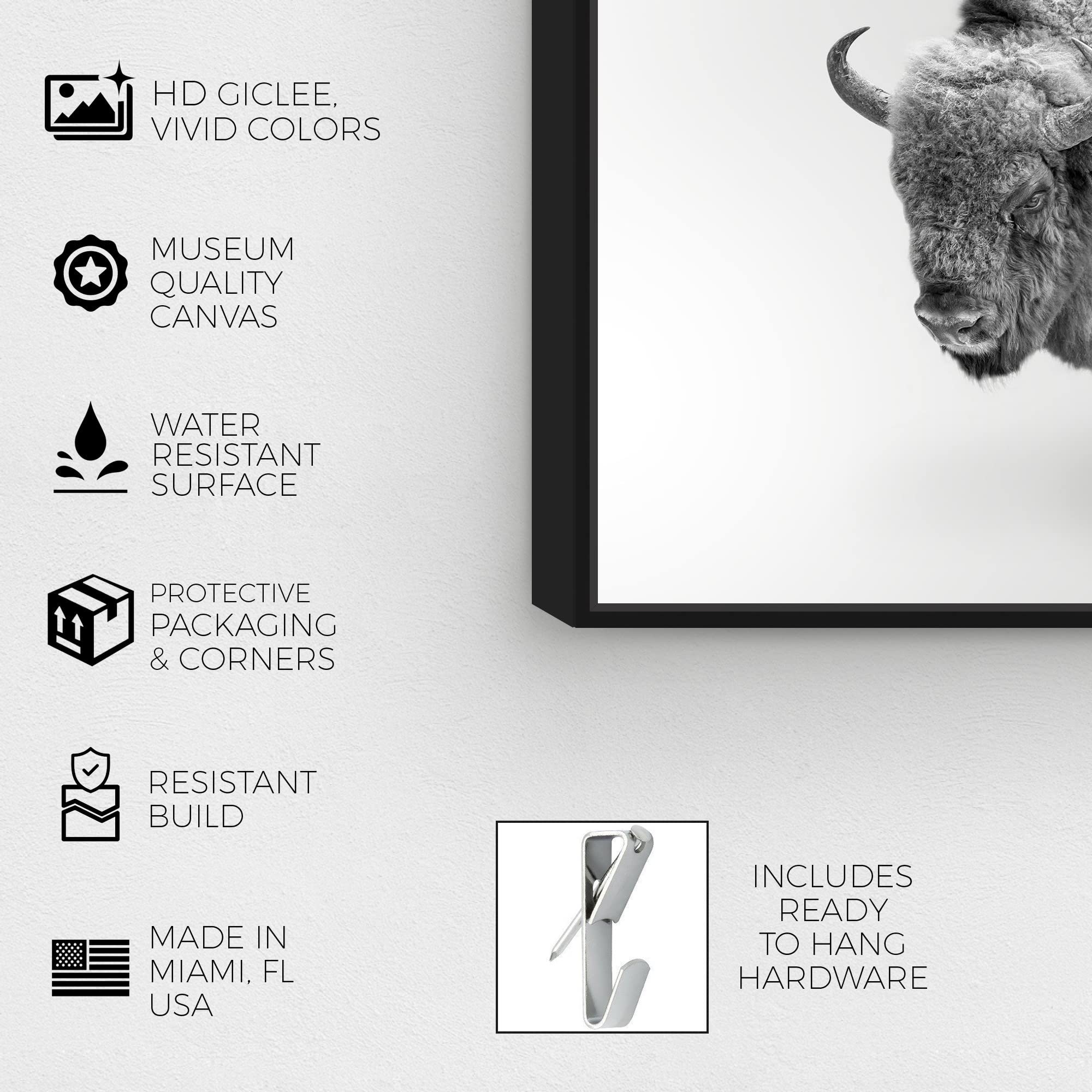 Amazon Com Country Farmhouse Canvas Print Painting Animal Wall Art Black And White Bull Bison Black Framed Canvas Rustic Home Decor 54x36 In Gray Black By Oliver Gal Everything Else
